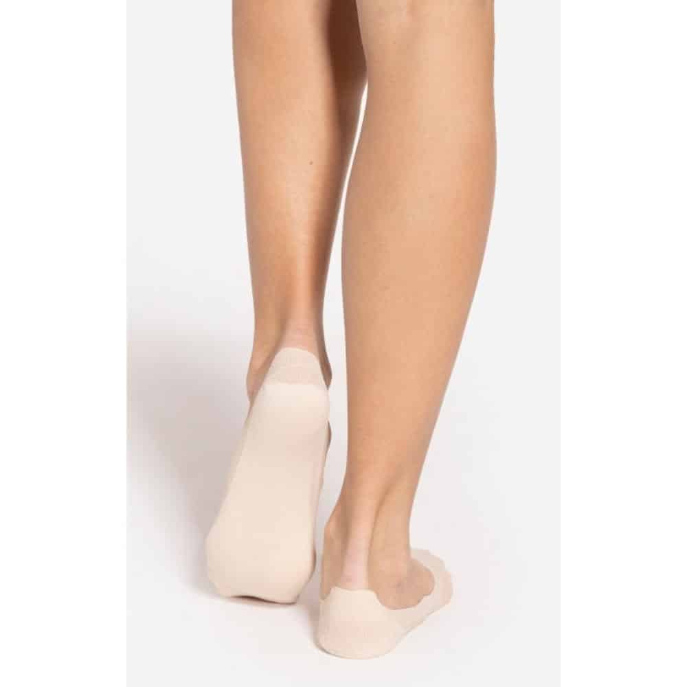 Wykonane z cienkiego, elastycznego materiału poliamidowego, idealnie dopasowują się do kształtu stopy. Dzięki płaskiemu, laserowemu wykończeniu noszenie ich to czysta przyjemność. Zapiętek został dodatkowo wyposażony w silikonowy pasek, który skutecznie zapobiega ślizganiu się stopy.