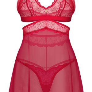 Krátke babydoll šaty v červenom odtieni Čipkované prvky sú