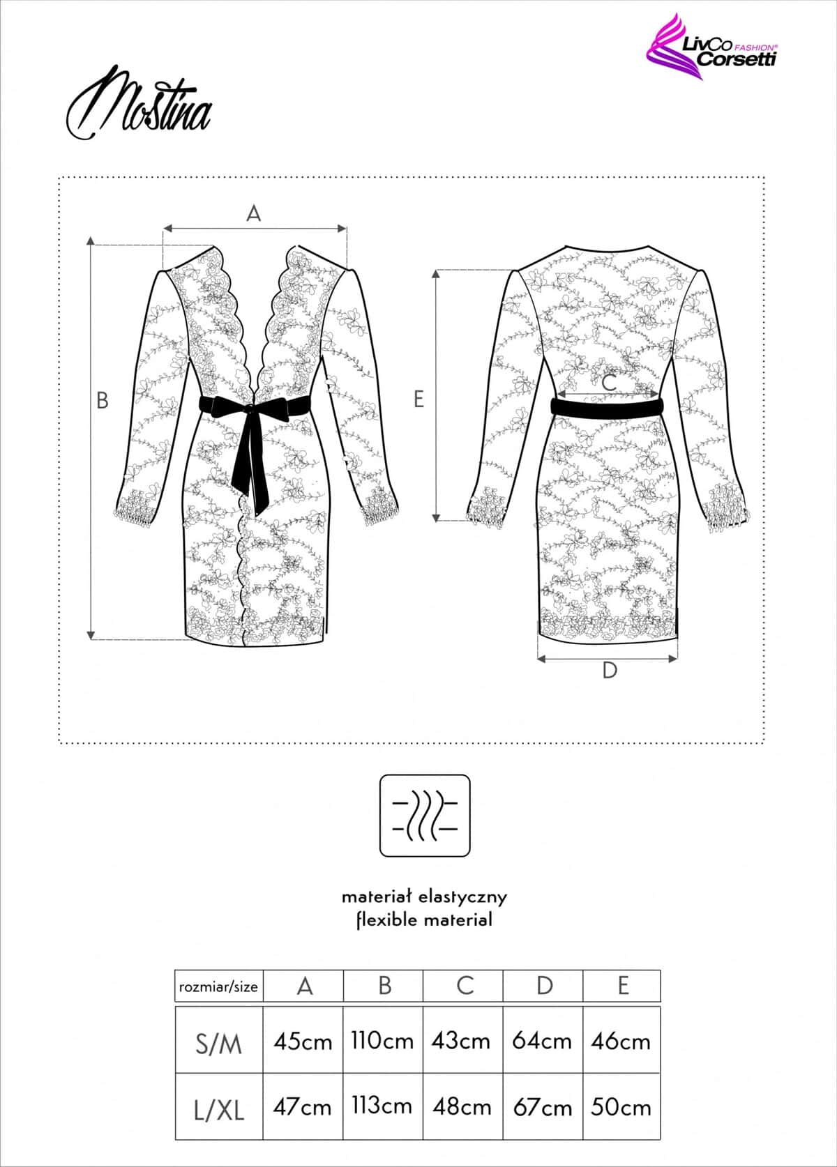 Župan snov pre ženy, ktoré majú rady zmyselnú spodnú bielizeň. Atraktívny, sexi, čierny, dlhý do polovice lýtok. Materiál, z ktorého je ušitá doska, je polyamid. Priehľadný, s jemným kvetinovým vzorom. Župan má dlhé rukávy, ozdobný predný diel a lem rukávov. Obrovské čaro a originálny vzhľad mu dodáva široká čierna šerpa, ktorú je možné uviazať v páse. Mierne rozparok bude vyzerať zvodne a podmanivo. Krásne ladí s čiernou alebo červenou spodnou bielizňou. Bude to perfektný outfit na rande bez oblečenia. Vyrobený z nekrčivého materiálu, dokonale sa prispôsobí telu, nekrčí sa. Ak sa žena chce cítiť pohodlne, ak sníva očariť muža svojho života, tento zmyselný župan bude vynikajúcou voľbou. Produkt môže byť senzačný darček pre dievča na Valentína, pre mladú manželku na výročie svadby alebo akúkoľvek inú príležitosť. Darovaný milujúcim mužom určite prinesie žene veľkú radosť.